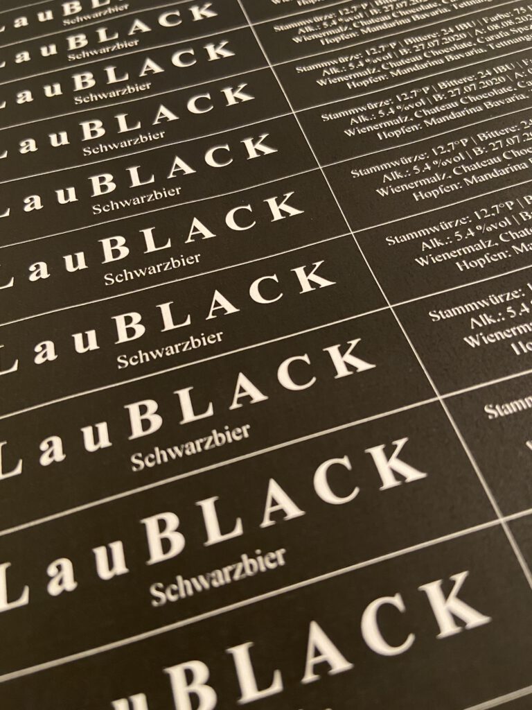 Heute habe ich das LauBlack No.1 abgefüllt. Zunächst habe ich das Jungbier aus dem Gärbehälter direkt auf die Zuckerlösung zum Karbonisieren umgeschlaucht. Daraus dann mit einer Abfüllpistole in 0,33l Flaschen abgefüllt. Obligatorisch habe ich auch eine Flasche Weißglas befüllt, um die Farbe des Bieres besser sehen zu können. Es hätte gerne etwas dunkler sein können. Aber die Röstmalze sind erst zur Hälfte der Verzuckerungsrast in die Maische gekommen. Daher ist das Schwarzbier etwas heller als berechnet. Nach dem Abfüllen wurden auch gleich die Banderolen für die Flaschen gedruckt, geschnitten und geklebt. Jede Flasche trägt eine Banderole. So hat jeder Trinker gleich einige Informationen zu dem Bier.