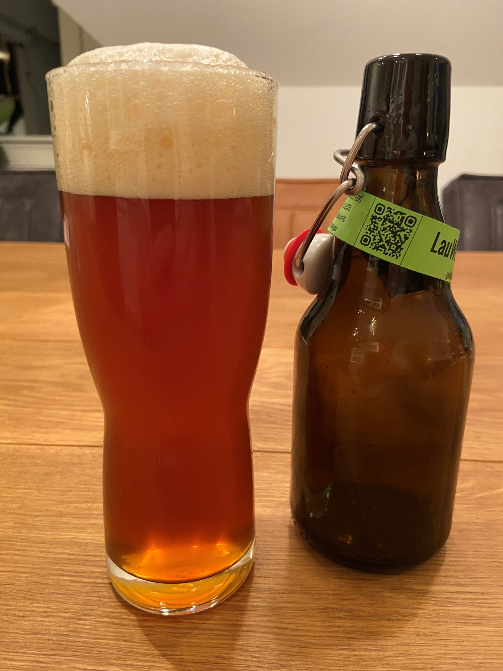 Die Nachgärung des LauWinterbock No. 0 ist durch. Die Reifung im Kühlschrank bei 6°C gestartet. Da muss nach zwei Tagen schon eine Flasche zum Pretasting herhalten. Das Ergebnis ist bisher sehr gelungen. Malzcharakter und Hopfen ergänzen sich sehr gut. Ein leichter Hauch von Brotkruste ist erkennbar. Der Bock schmeckt bisher relativ rund. Im Abgang etwas herber, aber nicht bitter. Lecker, passt irgendwie. Ich denke der Bock wird während der Reifezeit noch besser und ausgewogener. Dazu werde ich natürlich regelmäßig berichten. Parallel habe ich das LauPils(ner Art) No.0 nochmal verkostet und bin positiv von der Oslo Kveik Hefe überrrascht. Es ist zwar noch sehr trüb und ich bin mir auch nicht sicher, ob sich das noch klärt, aber die Zeit wird es zeigen.
